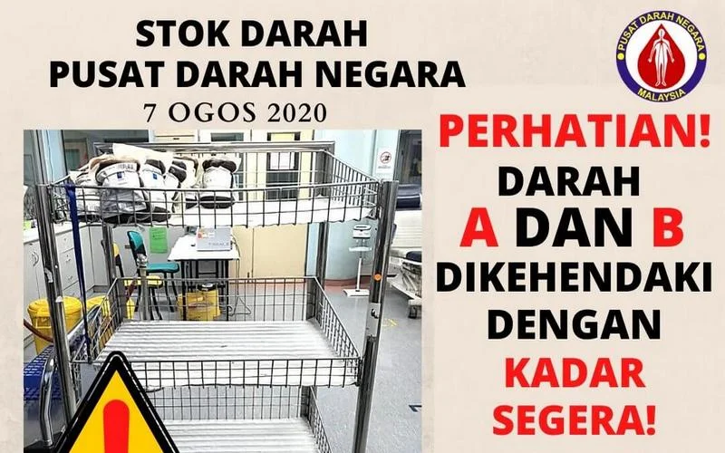 The National Blood Centre of Malaysia is once again calling upon blood donors to donate their blood, especially those of Types A & B, as reserves are running dangerously low.