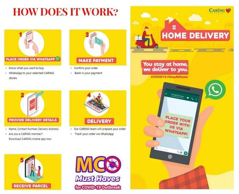 For shoppers who prefer the benefit of BOTH face masks and hand sanitiser home delivered, Caring Pharmacy has recently offered this service for the convenience of customers. Free delivery is provided for minimum RM150 spend.