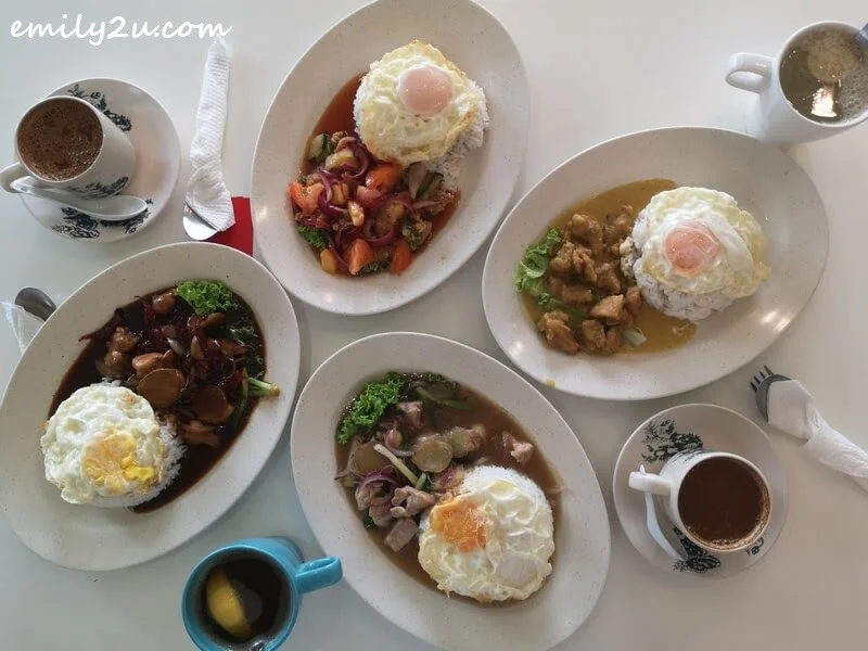 All rice sets are topped with a fried egg. Although the menu isn’t fancy, they do offer something called “Slipper Rice”. Funny! Meanwhile, for noodles, there are a few options: hor fun (flat rice noodles), yellow noodles, bihun (rice vermicelli), yee mee and Maggi.
