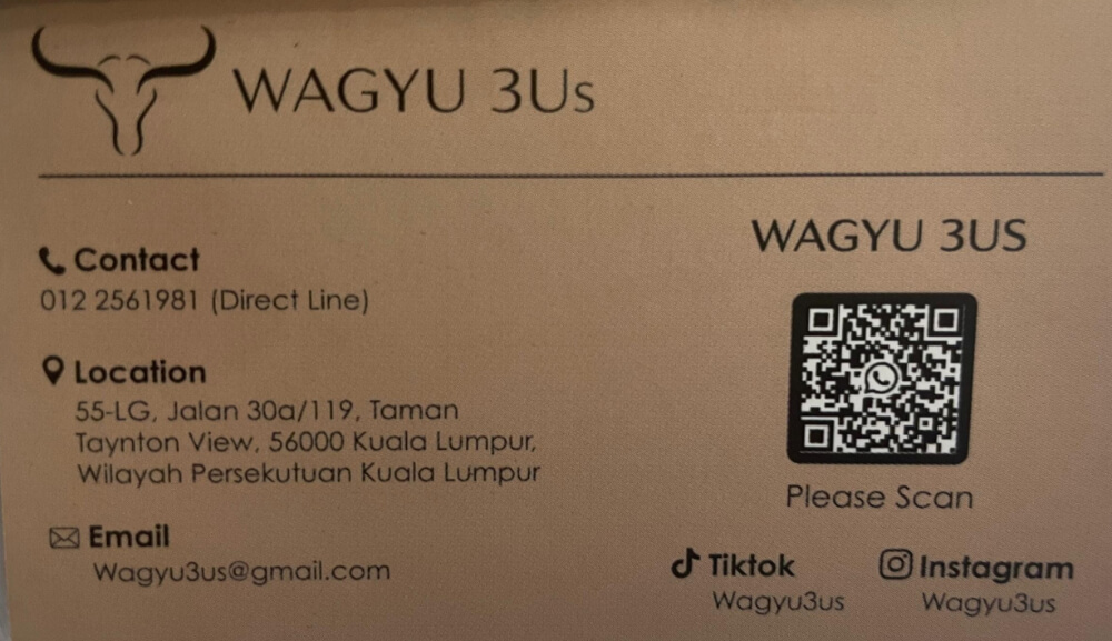 Dining on A5 Wagyu at a restaurant can easily cost between RM300 to RM500 per serving. With Wagyu 3Us, you are not paying for ambience or service; you are paying for the meat itself.