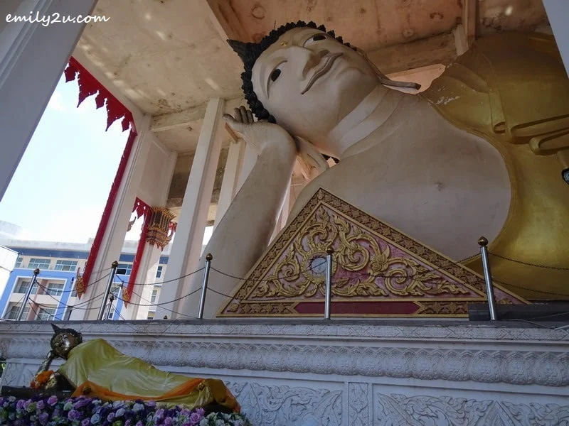 You will alight at the main road. Cross it and snake your way through a wet market. It’s a short and uncomplicated route as you can actually see the apex of the roof of Wat Hat Yai Nai from afar.